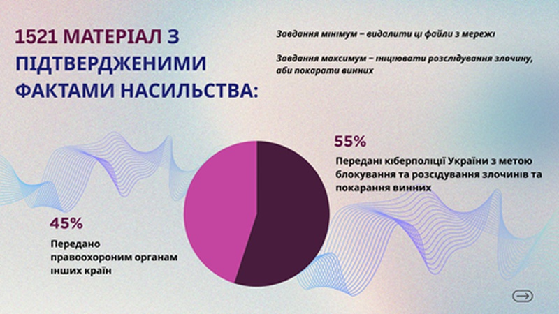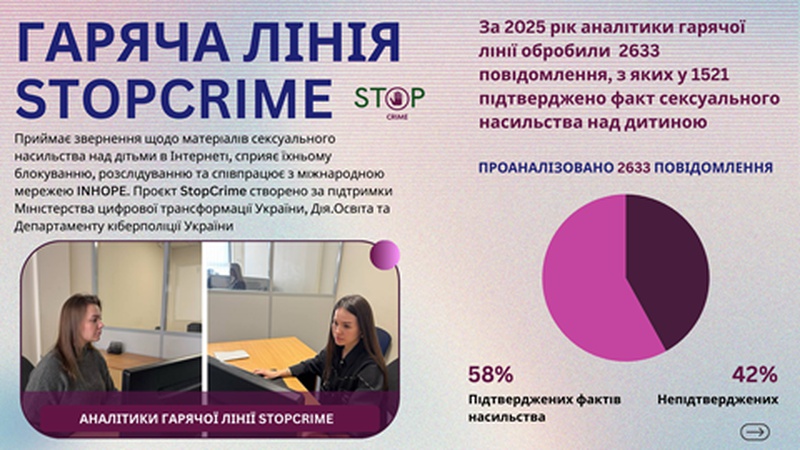 Так, інтимні фото і відео – це завжди про надзвичайну вразливість. І тут доречно розповісти про рік роботи гарячої лінії "Стоп крайм" в Україні. Аналітики проаналізували 2633 повідомлення про сексуальне насильства над дітьми в Інтернеті. І 1521 з них передали в поліцію, бо йшлося про реальний злочин.
